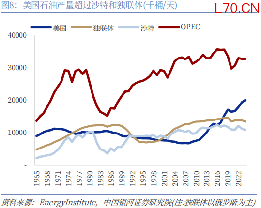 页岩油革命后(2014年至今),油价与物价的关系开始发生变化,核心在于供给弹性的显著提升。美国页岩油革命使全球原油供给从过去主要依赖OPEC调节,转向“页岩油+OPEC”共同决定的格局。2014年前后,面对页岩油快速扩张,OPEC一度选择不减产、以价格战方式争夺市场份额,直接导致油价大幅下跌。油价不再像过去那样随着需求端同步,而是更容易受到供给变化的影响,上下波动更频繁、持续性也更弱。