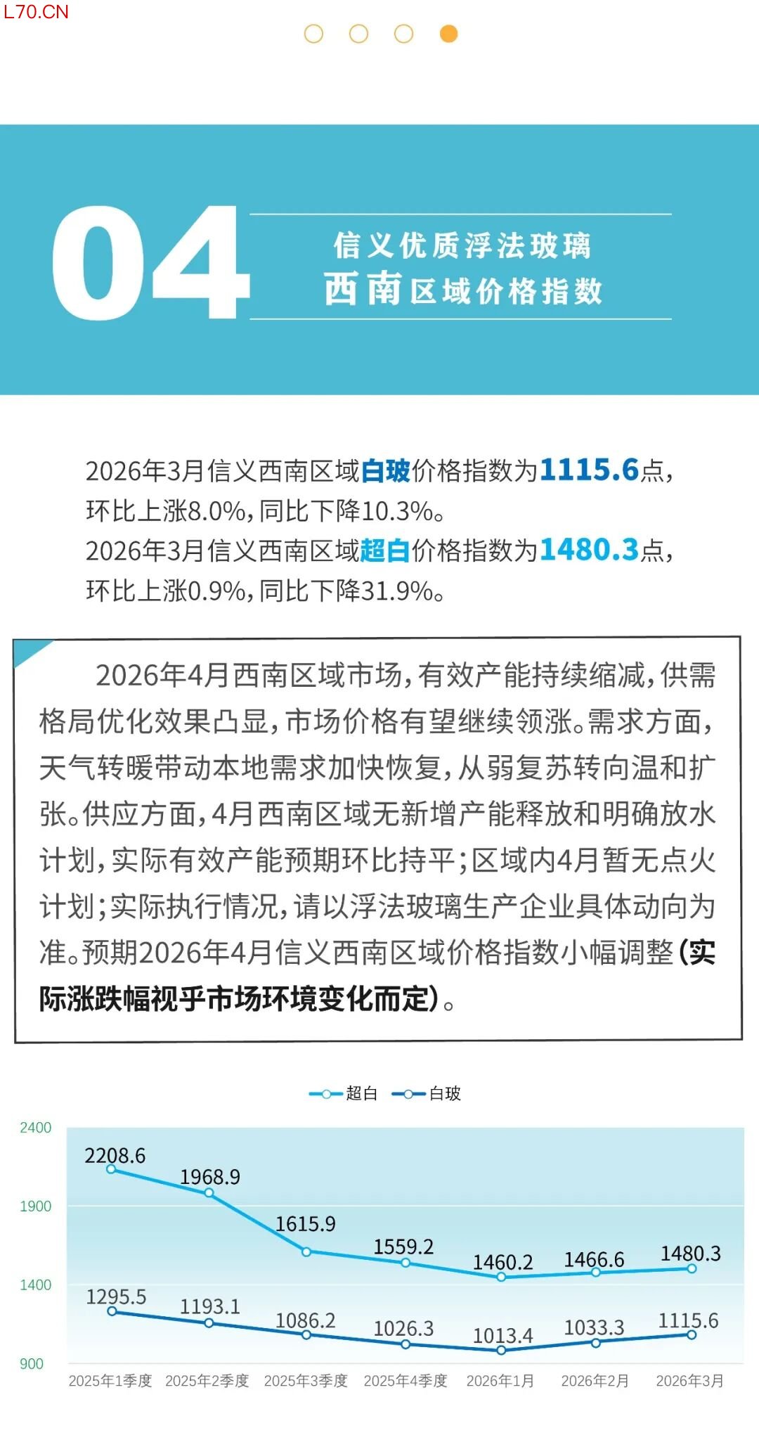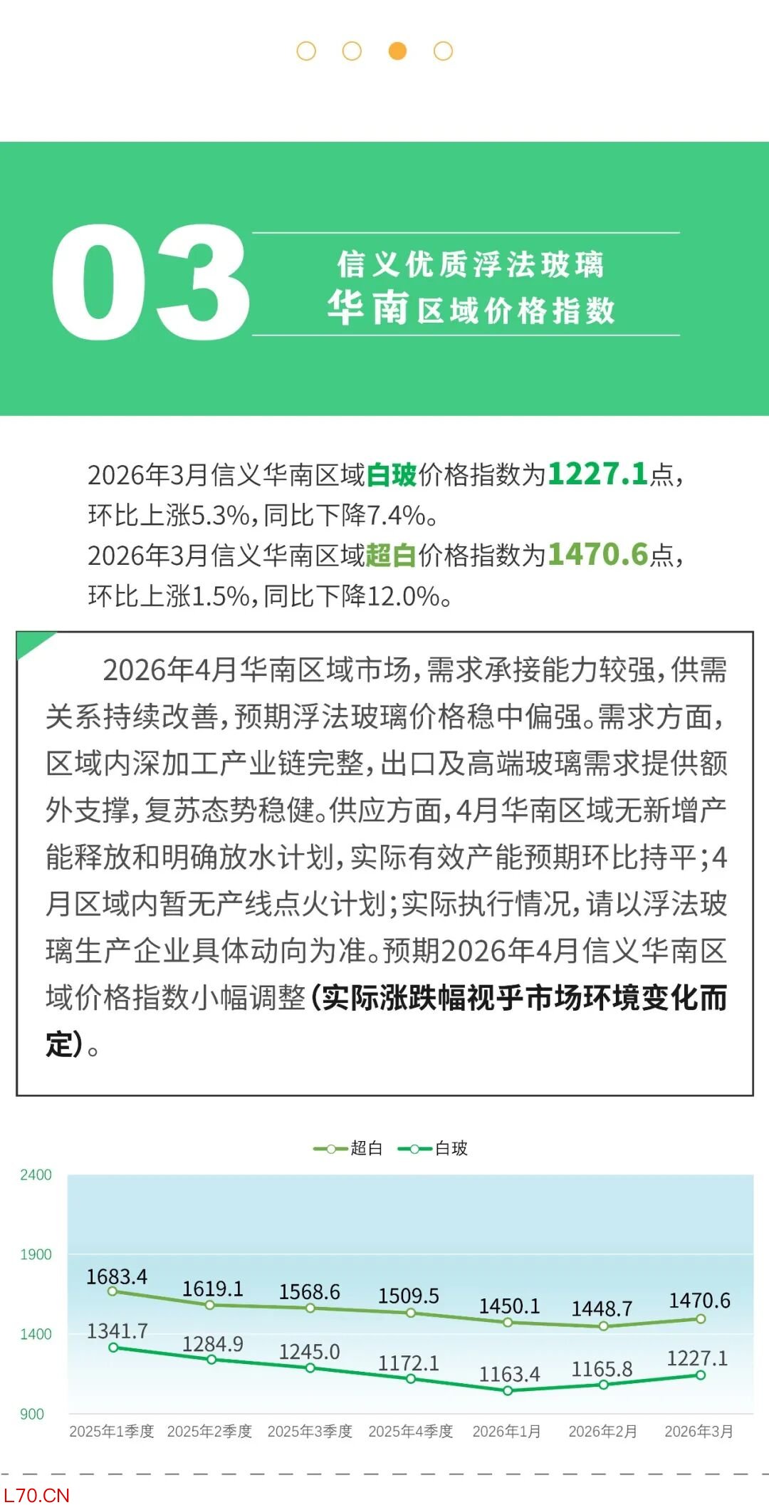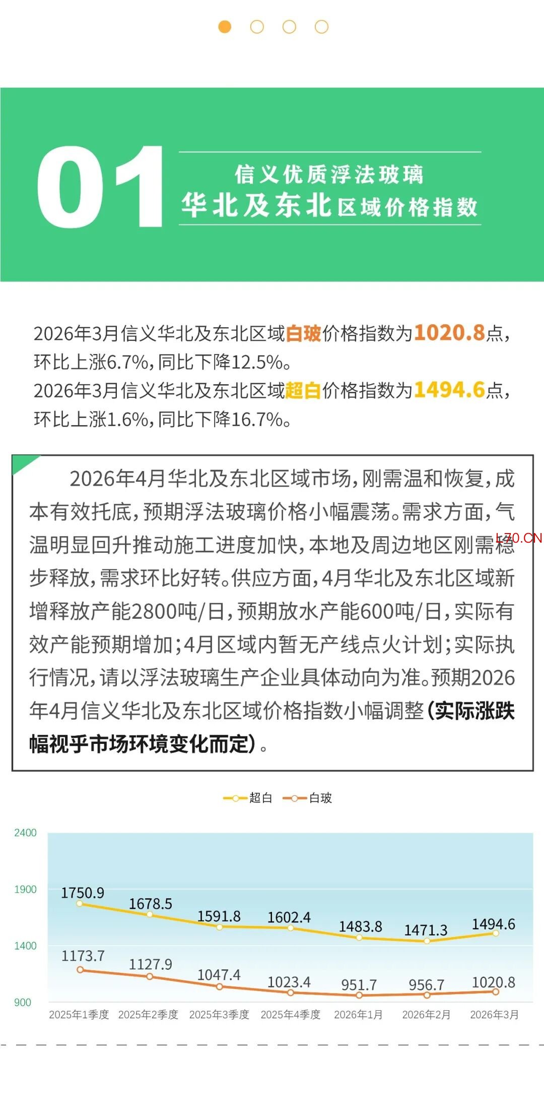 4.信义优质浮法玻璃价格指数于每月初发布前一个月的价格指数。