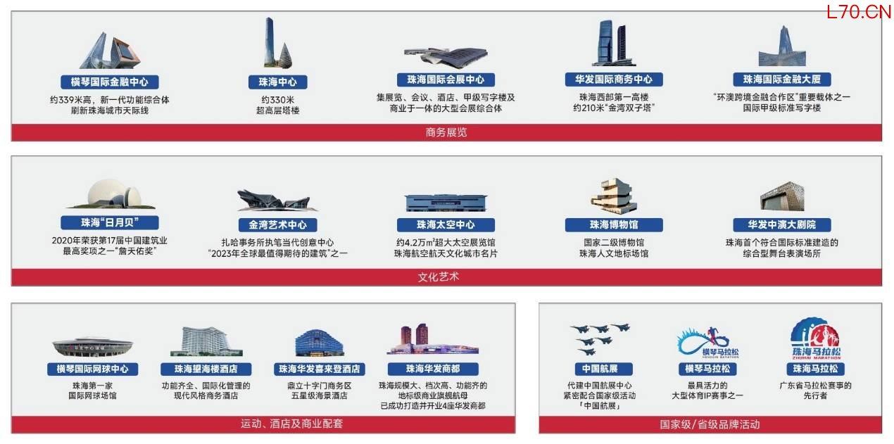 【图片说明:45年来华发与珠海共生共荣,超过20多个城市地标及IP活动站着华发身影】