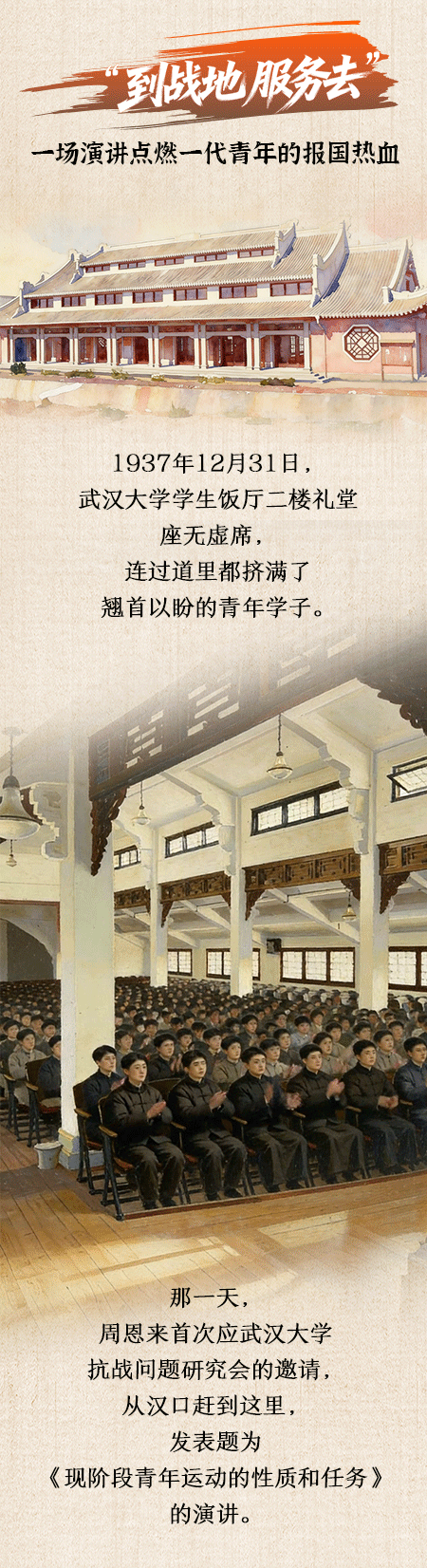 “我们中国的青年,不仅要在救亡的事业中复兴民族,而且要担负起将来建国的责任。”89年前,周恩来在武汉大学的一场感召全国青年的演讲,至今仍感动着当代青年。